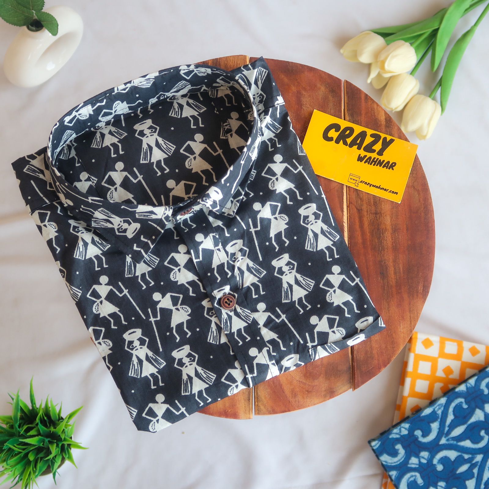 It is a Unisex printed pure cotton slim-fit shirt is a summer must-have. It is having a regular collar, 1 pocket, half sleeves.