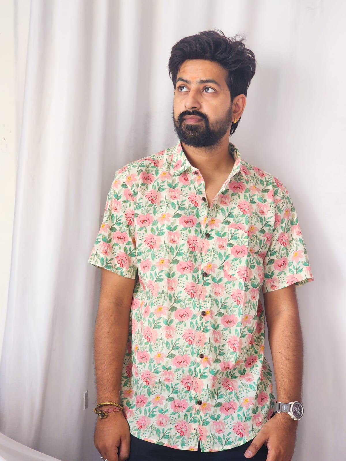 It is a Unisex printed pure cotton regular-fit shirt is a summer must-have. It is having a regular collar, 1 pocket, half sleeves.