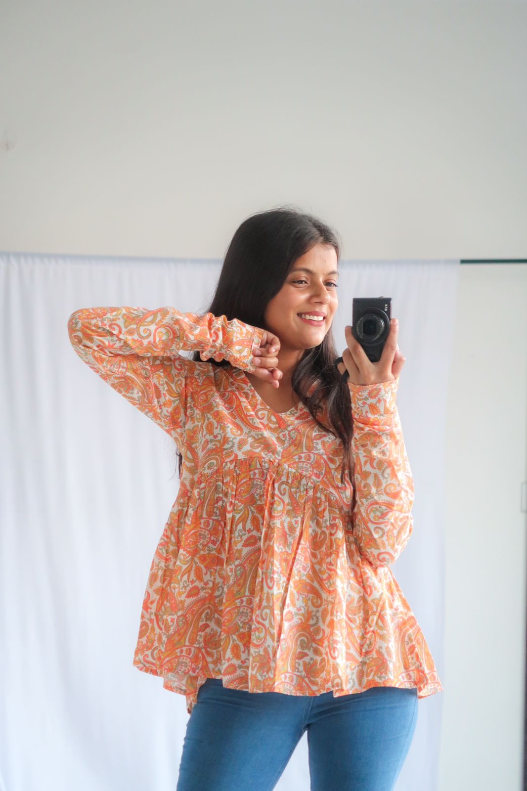 The kurti’s pleated design above the waist adds a flattering flare, enhancing its graceful silhouette. Whether you pair it with denims for a casual day out or dress it up with palazzos for a special occasion, this versatile piece is your ticket to effortless elegance.