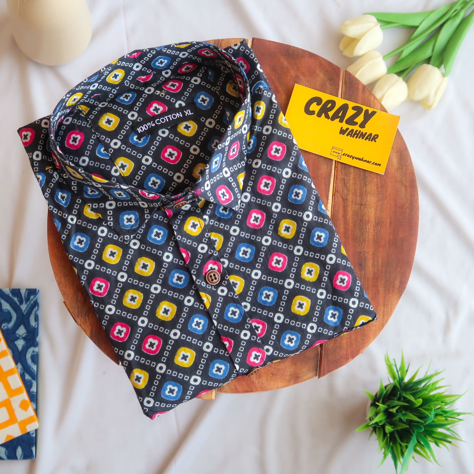 Midnight Multicolour Bandhej Full Sleeve Shirt