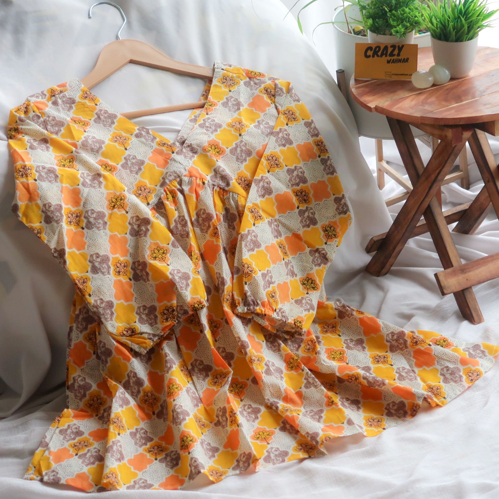 This striking peplum top short Kurti is a celebration of colors and patterns, featuring a captivating assortment of multicolor block prints. The harmonious interplay of various hues creates a visually captivating effect that draws attention and radiates energy.