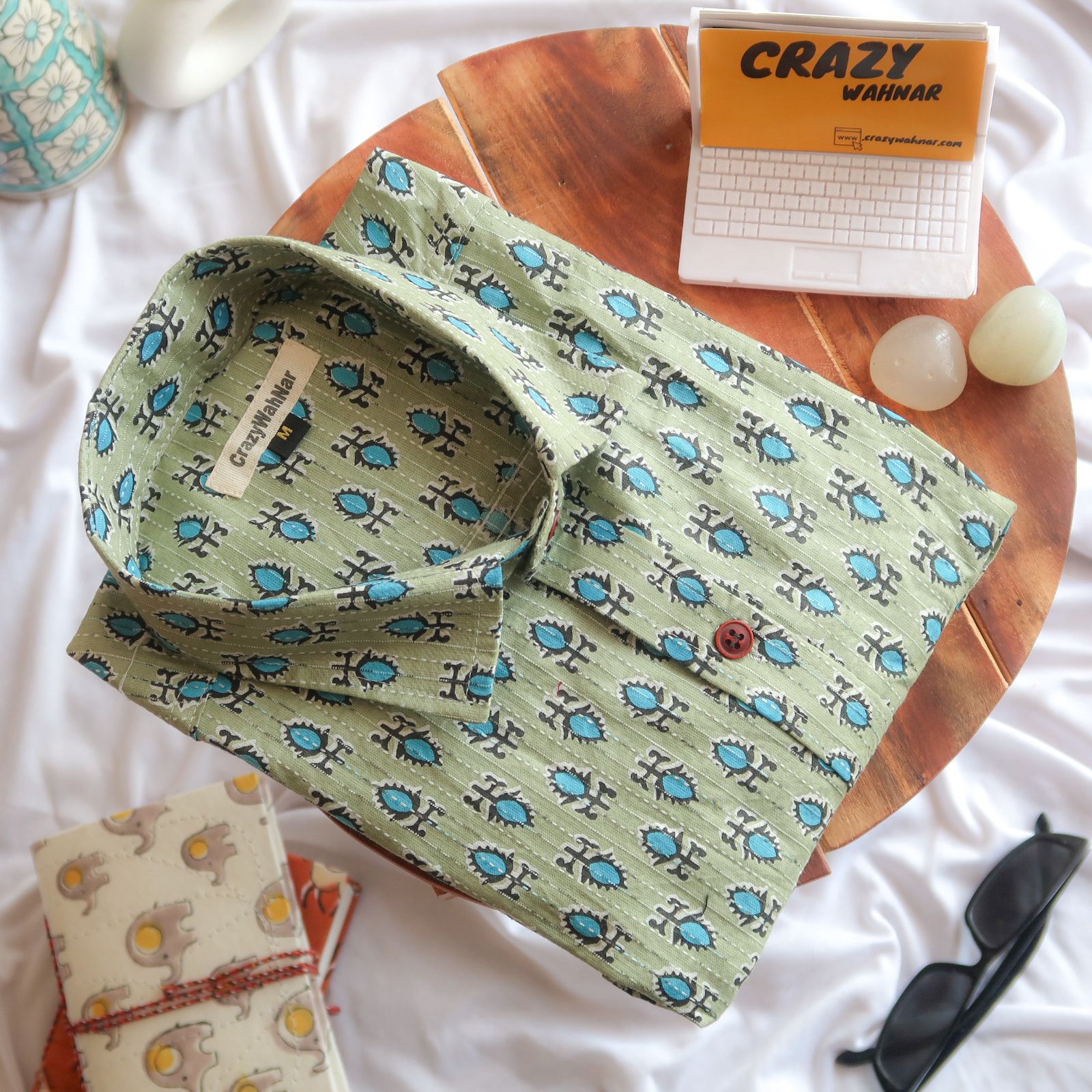 Pastel Green Motifs Printed Full Sleeve Shirt