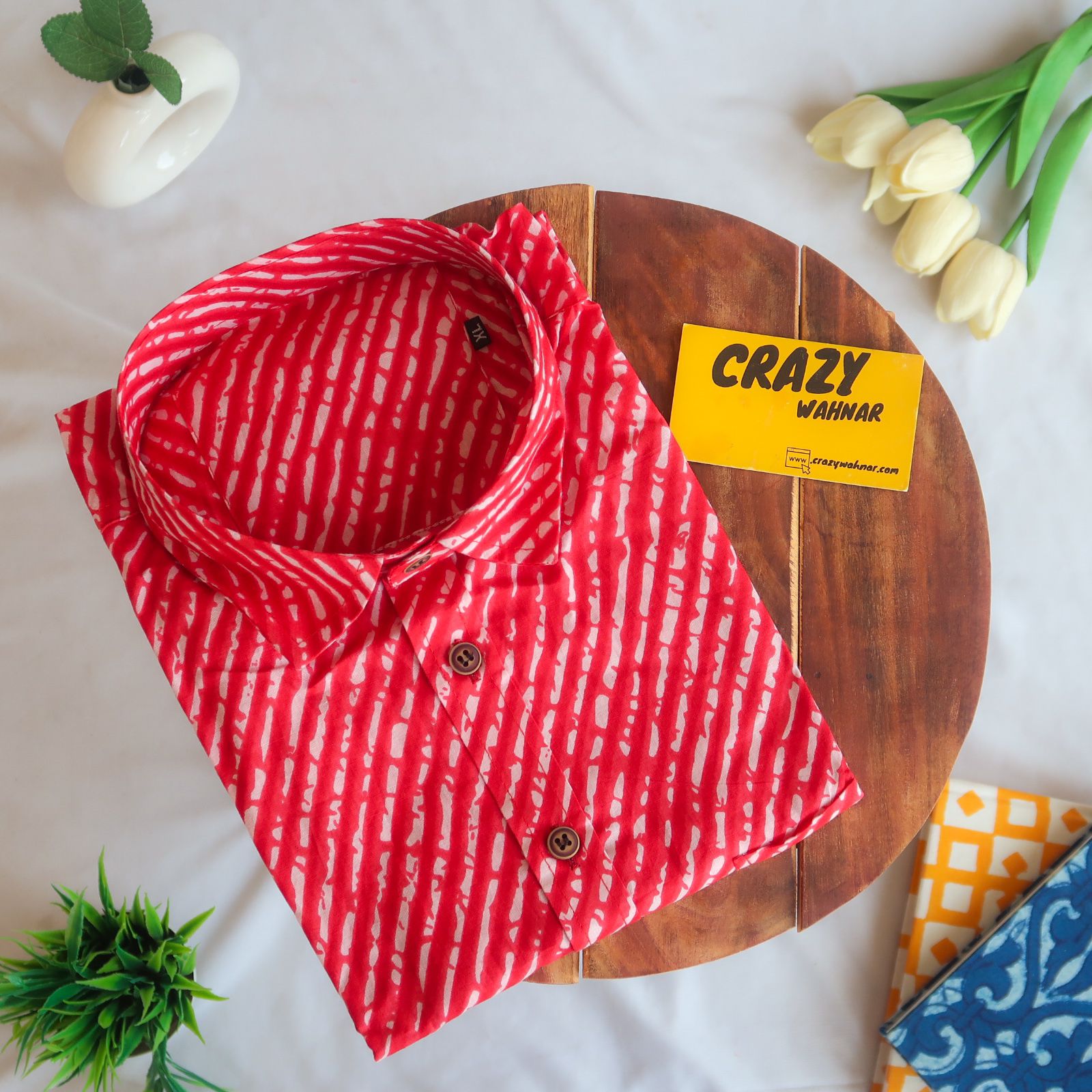 It is a Unisex printed pure cotton slim-fit shirt is a summer must-have. It is having a regular collar, 1 pocket, half sleeves.