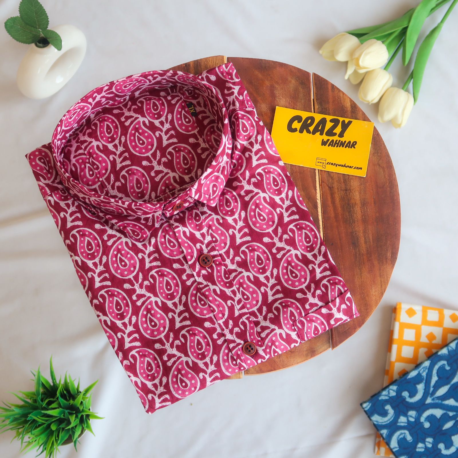 It is a Unisex printed pure cotton slim-fit shirt is a summer must-have. It is having a regular collar, 1 pocket, half sleeves.