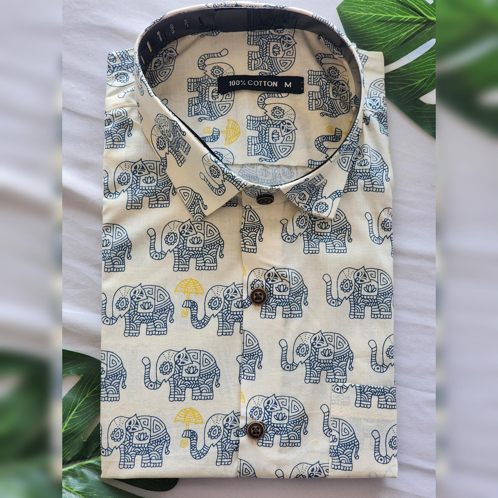 It is a Unisex printed pure cotton regular-fit shirt is a summer must-have. It is having a regular collar, 1 pocket, half sleeves.