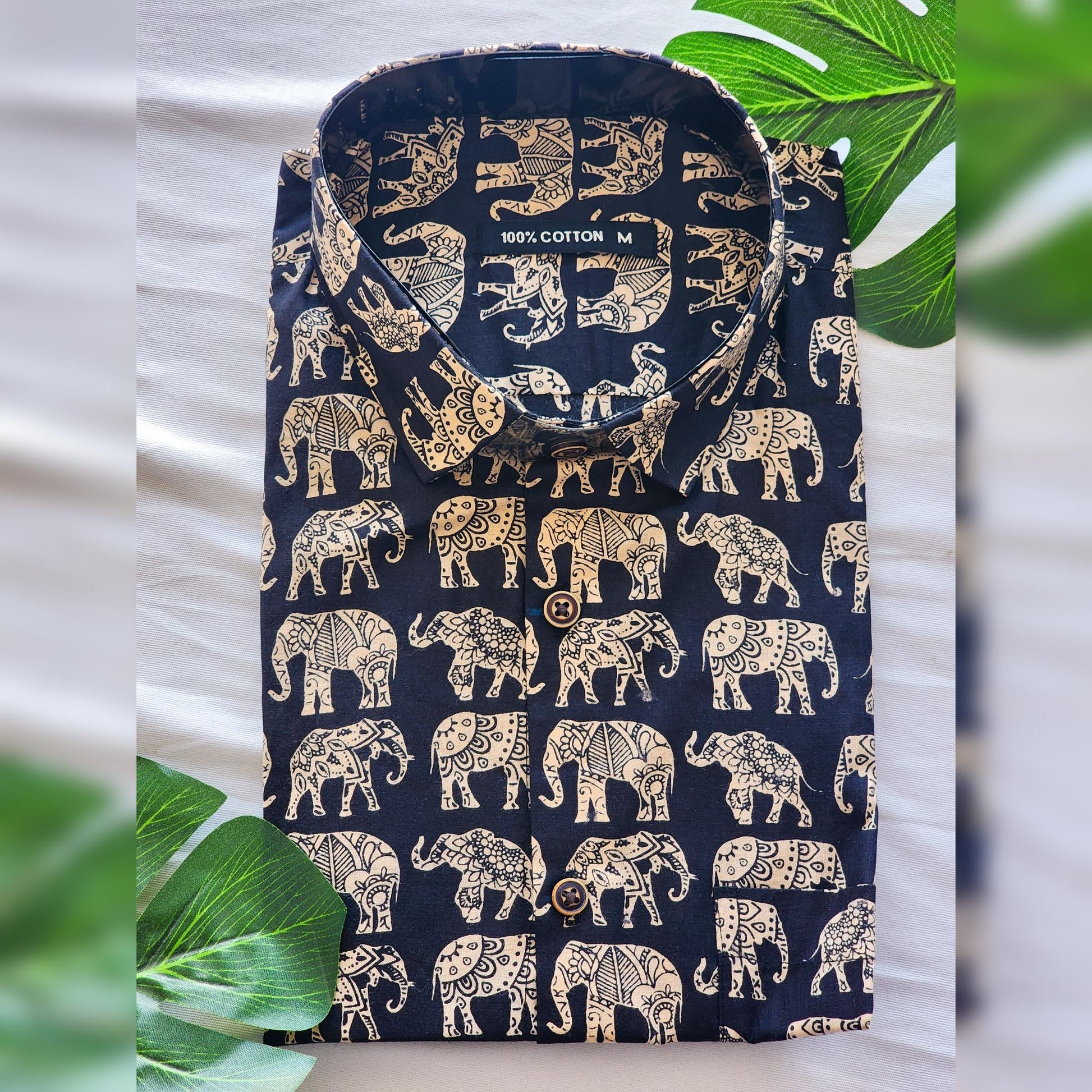 It is a Unisex printed pure cotton regular-fit shirt is a summer must-have. It is having a regular collar, 1 pocket, half sleeves.