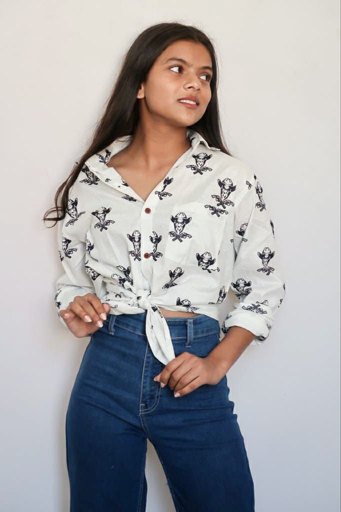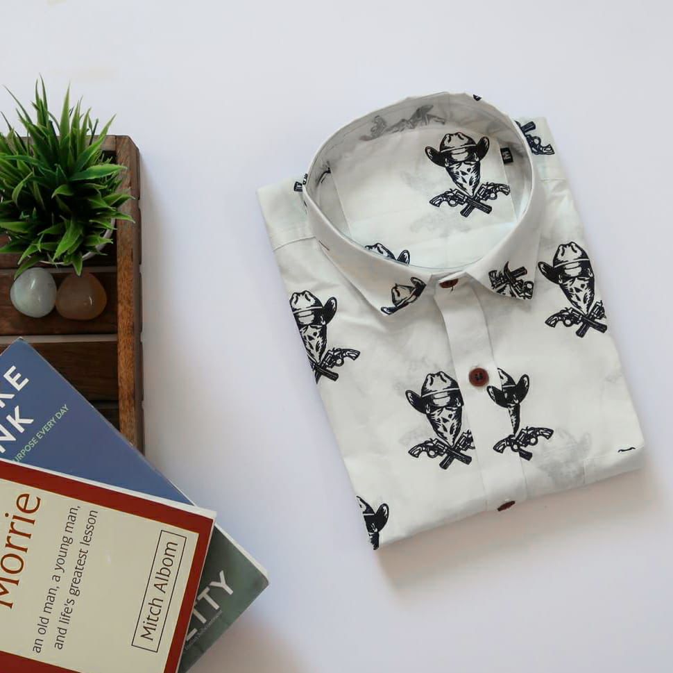 It is a Unisex printed pure cotton slim-fit shirt is a summer must-have. It is having a regular collar, 1 pocket, full sleeves.