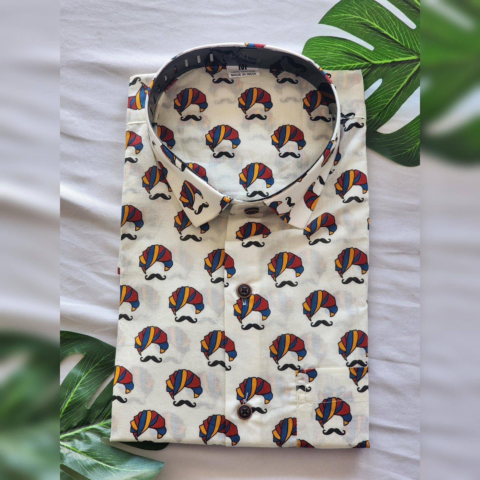 It is a Unisex printed pure cotton regular-fit shirt is a summer must-have. It is having a regular collar, 1 pocket, half sleeves.